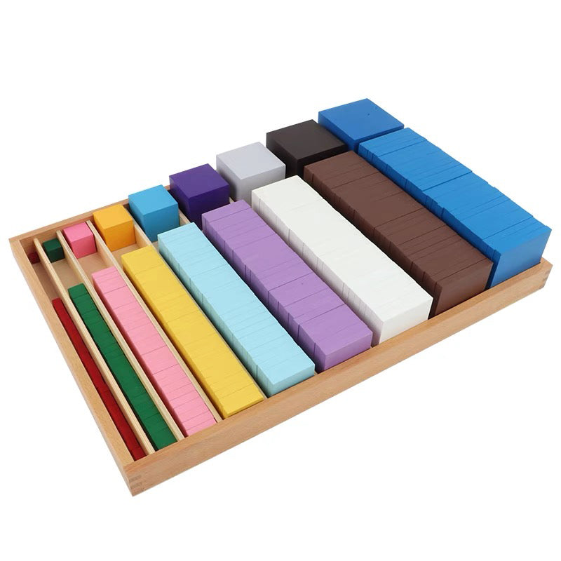 The material consists of 1 cube and 27 squares for each of the numbers from 1–9. Includes a beechwood tray.