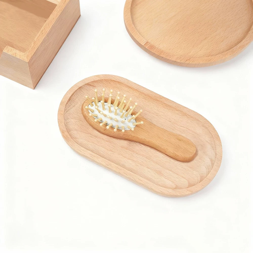 - Hairbrush -This toddler hair brush with a wooden handle and natural bristles features a small, easy-to-grip handle that is perfect for toddler hands.